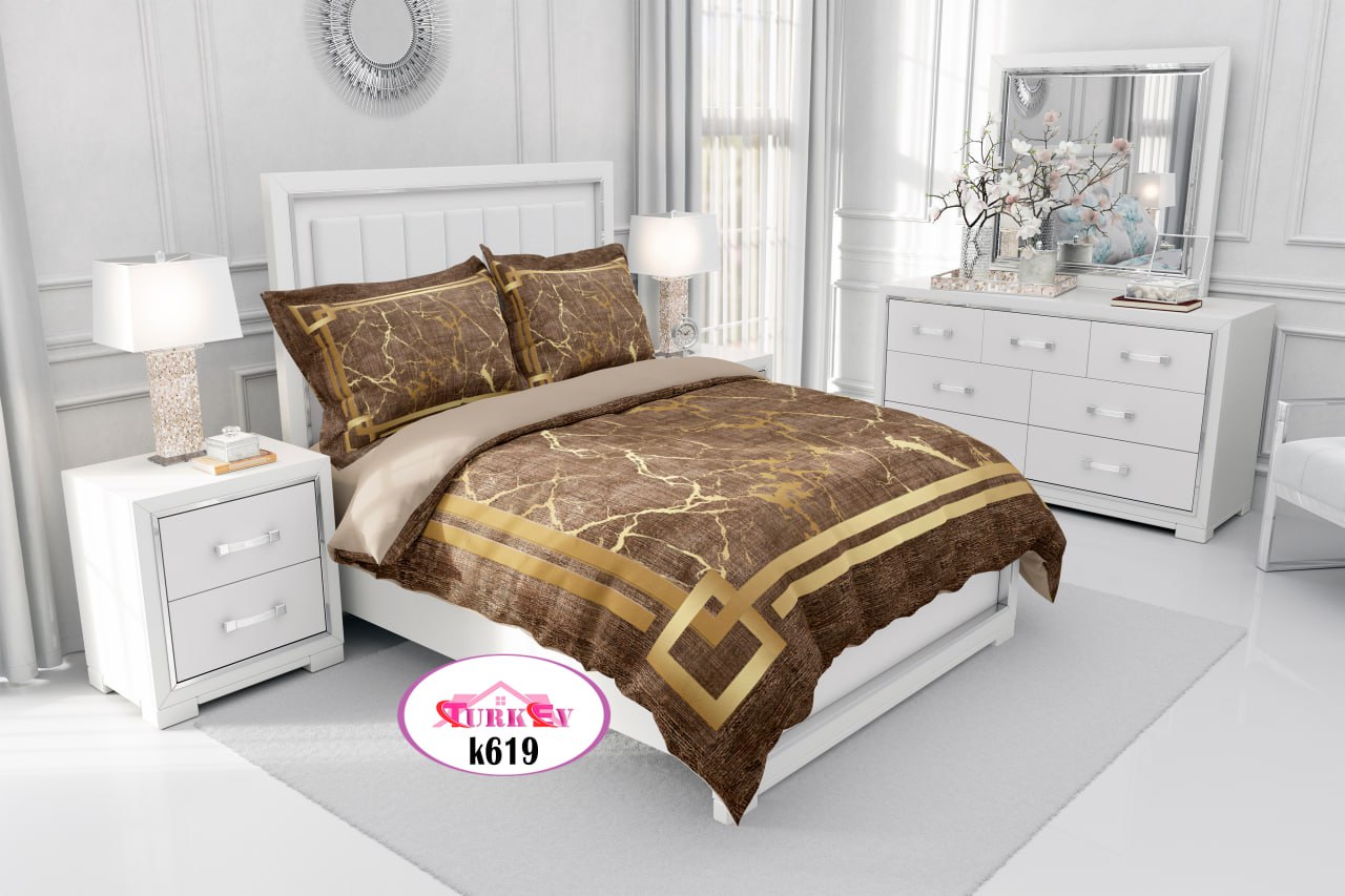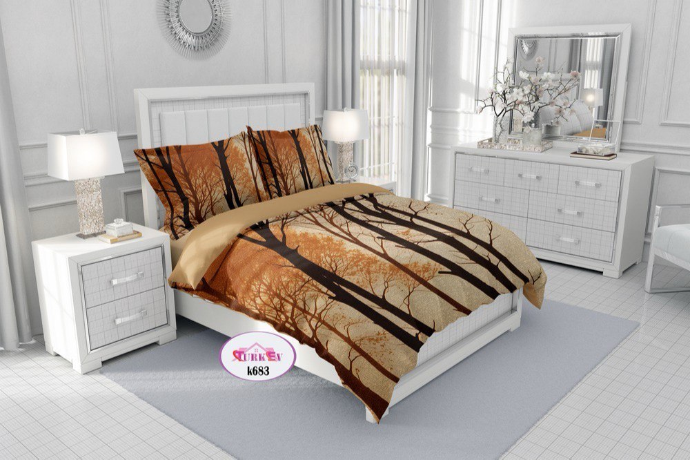 روتختی دو نفره چاپی تم رنگی کرم وقهوه ای
